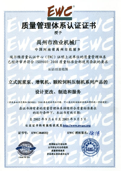 ----幾年來,我廠本著靠科技求發(fā)展,靠信息求市場(chǎng),靠質(zhì)量求生存,靠管理求效益的治廠方略,大膽進(jìn)行改革,建立起一套全新的運(yùn)行機(jī)制。2002年9月已通過ISO9001:2000國(guó)際質(zhì)量管理體系認(rèn)證;在2000年12月榮獲河南省科學(xué)技術(shù)廳“科技企業(yè)證書“;2001年7月獲河南省科學(xué)技術(shù)廳“高新技術(shù)產(chǎn)品證書“;2001年12月獲河南省科學(xué)技術(shù)廳“高新技術(shù)企業(yè)認(rèn)定證書“;曾獲河南省鄉(xiāng)鎮(zhèn)企業(yè)名牌產(chǎn)品稱號(hào)。